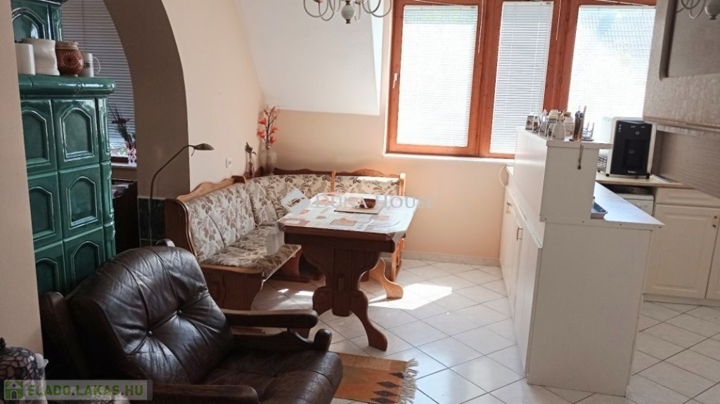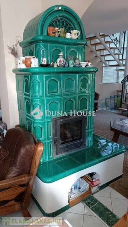 Az alsó nappaliban egy nagyon szép , gondos kezek által készített cserépkályhát is találunk, ami tényleg hangulatossá teszi a belső teret.