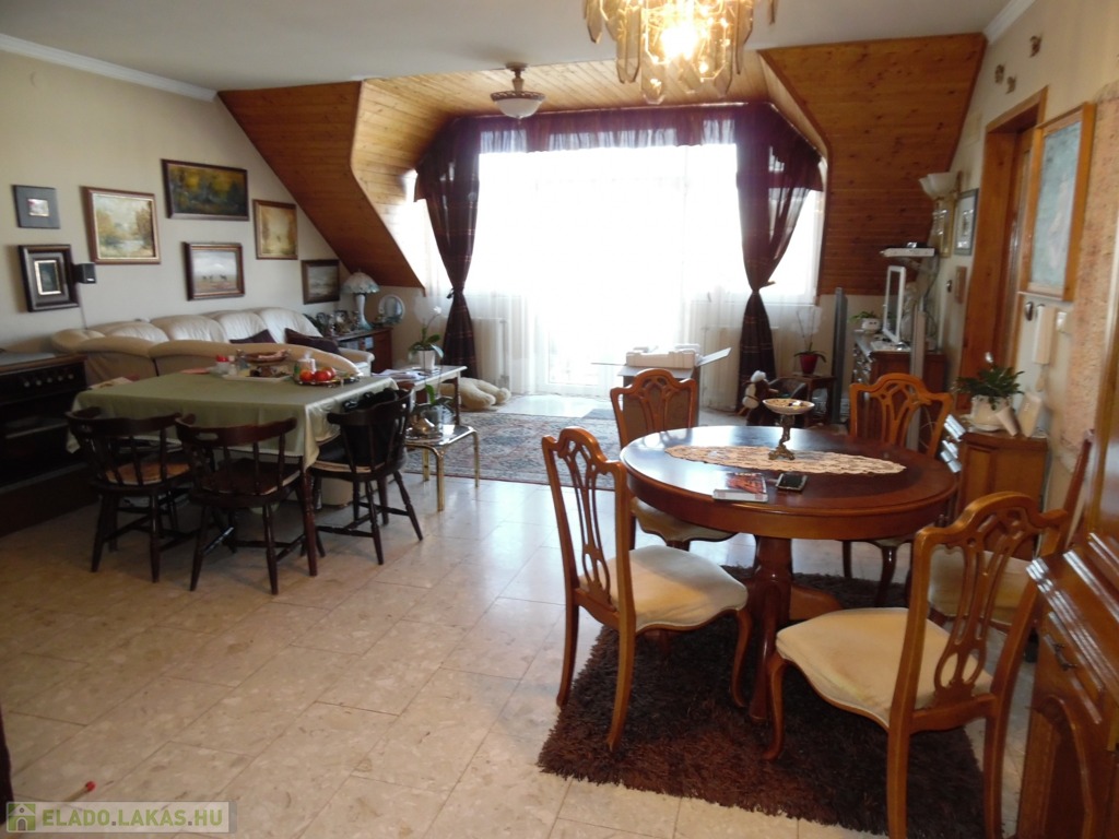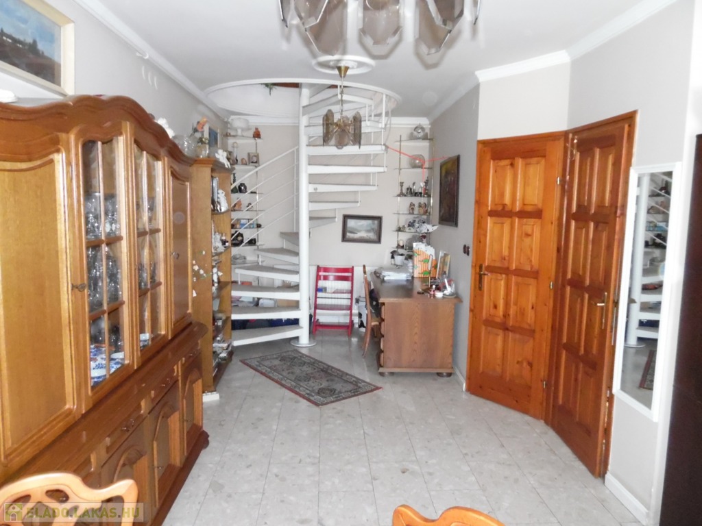 Zala megye, Zalaegerszeg 81 m2-es hasznos alapterületű lakás eladó. A zalai megyeszékhely belvárosában, a Mártírok útján, harmadik emeleti, belső kétszintes lakás eladó. Az erkélyes ingatlan a 4 szintes társasház harmadik emeletén található. A fogadószinten szélfogó, tágas nappali+konyha+étkező, fürdőszoba és kamra került kialakításra. Innen csigalépcsőn jutunk a tetőtérbe, ahol egy közlekedő, fürdőszoba, és 3db háló fogad minket, melyből az egyik jelenleg gardróbként funkcionál. A kilencvenes évek közepén épült, tehermentes lakás melegéről gáz-cirkó fűtés gondoskodik. A szigetelt épület kelet-nyugati tájolású, a lakáshoz a zárt udvarban gépkocsibeálló is tartozik.