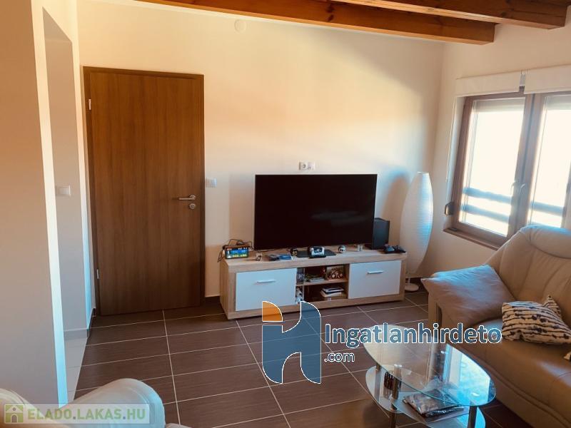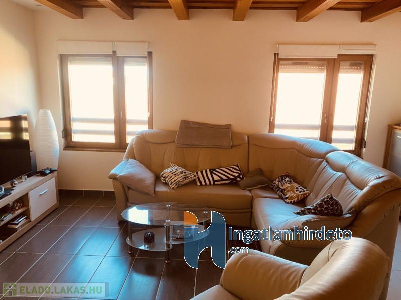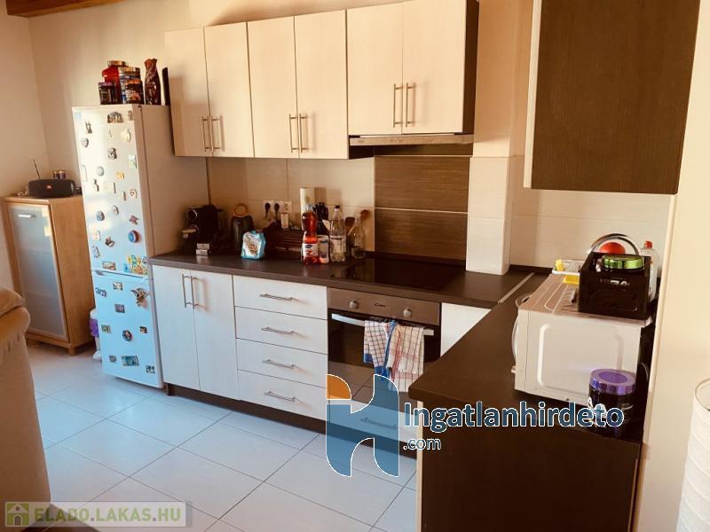 Elhelyezkedése: Belterület Emeleti elhelyezkedés: Emeleten Emelet száma: 2 Épület emeleteinek száma: 2 Tájolása: Keleti tájolású Állapota: Újszerű Komfort besorolása: összkomfortos Építési éve: 2017 Alapterülete: 89 m2 Szobák száma: 2 + 2 szoba Felújított: Felújított Felújítás éve: 2025 Közművek: Gáz, Víz, Villany, Csatorna Gázellátás: Vezetékes Vízellátás: Vezetékes víz Melegvíz-ellátás: Házközponti meleg víz Áramellátás: 230V Fűtés módja: Gáz Fűtés típusa: Központi egyedi mérővel Homlokzat állapot: Újszerű Építési mód: Tégla Tető formája: Magas Tető anyaga: Cserép, Beton tetőcserép Kilátás: Utcafronti kilátás, Udvari kilátás Napelem: Nincs Jellemzői: Alacsony rezsi, Csendes környék, Jó közlekedés, Redőny, Étkező, Amerikai konyha, Beépített konyhabútor, Kaputelefon, Egyedi vízóra , Egyedi hőfogyasztás mérő, Kapunyitó automatika, Beépített tetőtér Energetikai besorolás: Nincs adat Egyéb jellemzők: Erkély Tv, Internet: Kábeltévé, Internet Közelben: Iskola, Óvoda, Vasútállomás, Autóbuszállomás, Helyi autóbuszállomás, Orvosi rendelő, Bolt, Gyógyszertár, Postahivatal, Vendéglátó egység Rezsi költség(Ft): 15000 Terhelések: Tehermentes ingatlan Eladásra vonatkozó információk: Az ár tartalmazza a teljes berendezést, Azonnal beköltözhető