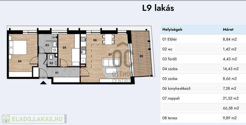 - 66,58 négyzetméter, alacsony energiaigényű, 7,40 négyzetméteres terasszal