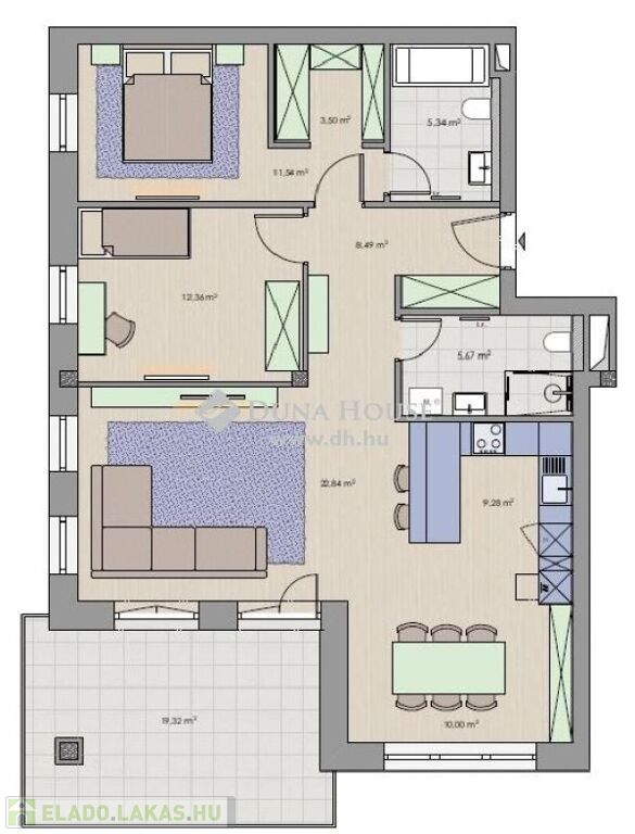 jól bútorozható, illetve saját gardróbos lakásokra