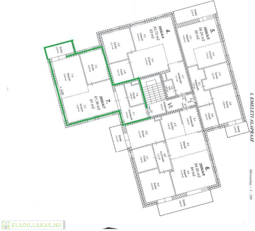 A kínált 61m2-es plusz 5m2-es erkéllyel rendelkező I. EMELETI lakás praktikus elrendezésű: előszoba-közlekedő, tágas amerikai konyhás nappali, egy hálószoba, egy erkéllyel valamint fürdőszobával rendelkezik.