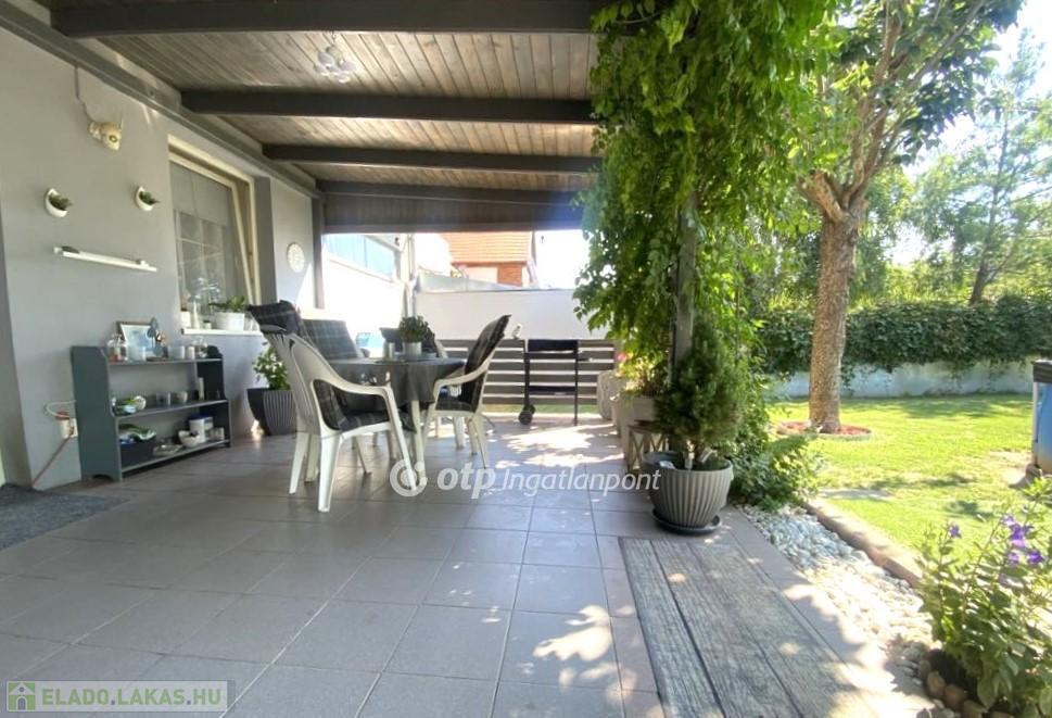 A Balaton déli partján, Zamárdiban 136 m2-es 4 hálószobás ház eladó. A város zöldövezeti részén, 444 m2-en telken fekvő kétszintes ház földszinti helyiségei: amerikai konyhás nappali, fedett terasz, háló, fürdő, wc. Az emeleten 3 háló, fürdőszoba, wc és egy jelenleg tároló/gardrób szobaként funkcionáló helyiség, amiből igény esetén még egy szoba kialakítható. A 25 m2-es fedett autóbeálló beépítésére is van lehetőség. Az emeleten egy szoba erkélyre nyílik, a földszinten az amerikai konyhás nappali pedig terasz kapcsolatos. A szomszédos egységeket dupla 38 cm-es Porotherm tégla választja el, a két egység között légréssel, így az ingatlan teljesen szeparált. A ház 2005-ben épült, azóta többszöri felújításon esett át, kívül-belül jó állapotú. Automata kapunyitás és riasztó vezetékes előkészítése megtörtént. Fűtéséről cirkó gázkazán gondoskodik, radiátoros hőleadással, az emeleten hűtő-fűtő klíma biztosítja a kellemes hőmérsékletet. A lakótér alapterülete 109 m2, a terasz, erkély, autóbeálló 50%-kal került beszámításra.