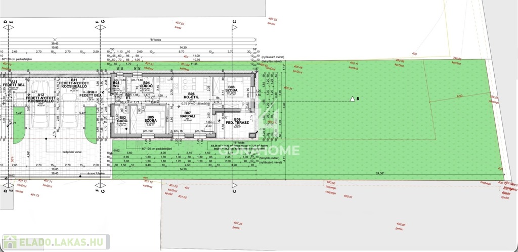 - Parkolás a bejárat mellet, FEDETT BEÁLLÓN (14 m2) lehetséges (az ár tartalmazza a beállót)