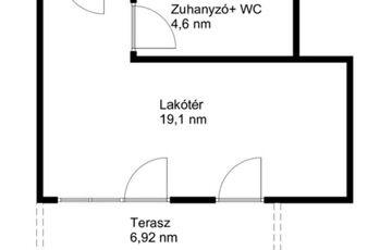 Ez a lakás a társasház második emeletén található (A74), 27 nm hasznos alapterülettel rendelkezik. Az ingatlan helyiségei: lakószoba, zuhanyzó, wc, terasz.