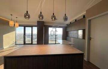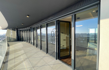 Eladó a város egyik legkülönlegesebb, új építésű társasházában egy VIII. emeleti, br. 92 m²-es, belsőépítész által tervezett, magas presztízsű lakás, 38 m²-es panorámás terasszal, három kijárattal.