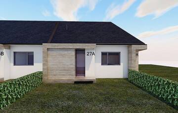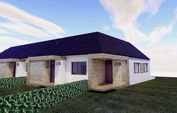 A termálfürdő közelében, új lakóparkban, 2026-ban épülő, zártsorú beépítéses, 2 lakásos, külön bejáratú ház egy 424 m2-es telken fekszik.