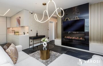 - **Felszereltség:** Teljesen berendezett és felszerelt, modern okos otthon technológiával, klíma, padló és mennyezet hűtés fűtés, riasztó- és kamera rendszer, valamint optikai internet kábel.