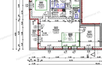 8, lakás nettó 57,05 m2, + 5,4 m2 erkély, nappali + 2 háló, fan-coil klíma (a hálószobákban kiállás előkészítés), riasztó, kaputelefon, 2db parkoló