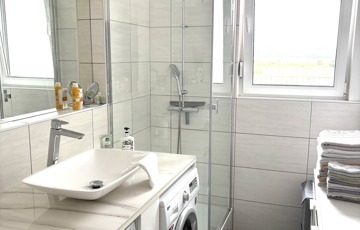 Három hálószoba, világos nappali, modern, teljesen gépesített konyha, elegáns fürdőszoba és külön zuhanyzós háztartási helyiség teremtenek kényelmes életteret.