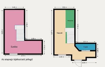 Az ingatlan 19 m² alapterületű, amelyet egy 17 m²-es, teljes belmagasságú állógaléria egészít ki – így a hasznos tér kényelmesen megnövekszik. A lakás okosan kialakított: a galérián tágas hálórész, a földszinten pedig nappali, konyha és zuhanyzós fürdőszoba található.