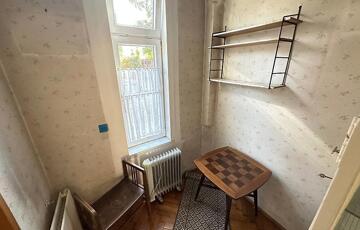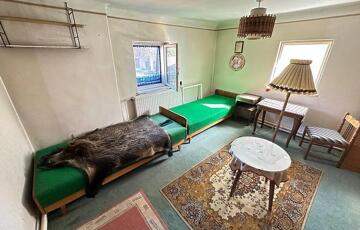 Az emeleti rész 40 nm-es, 1 szobás, felújítandó állapotú.