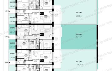Minden lakás mérete megegyezik, csak a kert mérete változó.(Lásd alaprajzok)