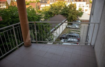 A lakás ablakai a belső udvarra néznek, így a sugárút zaja nem hallatszik be.