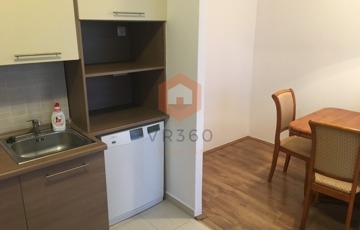 A lakásban klíma gondoskodik a kellemes hőmérsékletről, a fél szoba átalakítással étkezőként funkcionál, amely közvetlenül össze lett nyitva a konyhával, így világos és tágas hatású közösségi tér jött létre. A konyhában beépített, modern konyhabútor található, amely a vételár részét képezi.