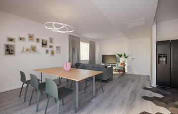 A lakás fűtéséről Mitsubishi levegő-levegő hőszivattyú gondoskodik jelenlét érzékelővel, páratartalom szabályozóval. A lakásban a friss levegőről hővisszanyerős szellőztetőrendszer gondoskodik. A lakás minden gépészetét egy okosvezérlő kezeli (Loxon) a bejáratnál elhelyezett nagyméretű tableten keresztül. Minden beépített anyag elsőosztályú és magas minőséget sugároz.