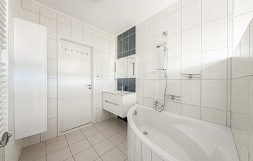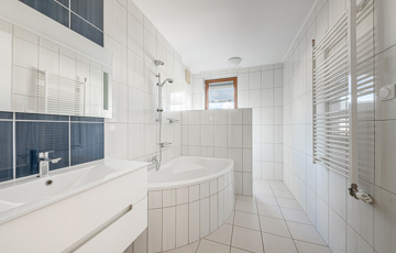 Az előszobával szemben egy fürdőszoba található, a hálószobák szárnyában pedig egy másik fürdő, külön WC, valamint négy háló, de igény esetén két szoba összenyitható, az eredeti alaprajz alapján.