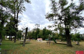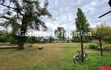 A társasház kertje szépen rendezett, közös játszótere mindenki számára elérhető.
