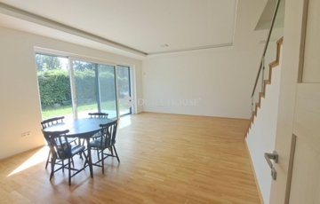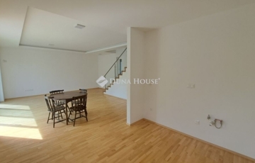 Földszint tágas nappali, modern konyha, közvetlen kertkapcsolat, ideális családi és baráti együttlétekhez.