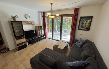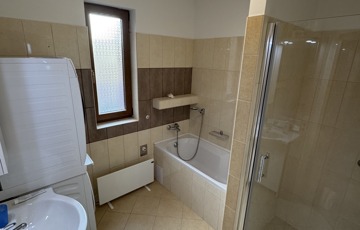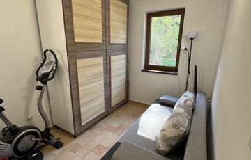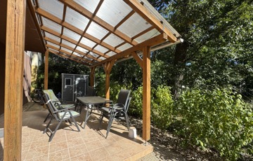 - helységek: amerikai konyhás nappali, innen léphetünk a fedett teraszra (mely 15nm) ill. a kertbe (50nm), két hálószoba, egy fürdő (melyben kád és zuhanykabin is található)ill. egy wc kézmosóval.