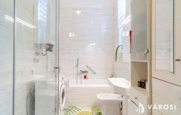 A lakás pár éve műszakilag teljes körűen megújult: új kondenzációs Baxi gázkazán és lapradiátorok gondoskodnak a hatékony fűtésről, háromrétegű műanyag hő- és hangszigetelt ablakok redőnnyel biztosítják a csendet és a nyugalmat, a teljes villamoshálózat új, a klíma pedig a nyári hőséget teszi könnyen elviselhetővé. A stílusos, teljesen felszerelt IKEA-konyha azonnal használatra kész, mellette egy praktikus kamra áll rendelkezésre. A konyhából még egy hangulatos belső zárt folyosóra léphetünk, amely kiváló helyszíne egy nyugodt reggeli kávénak vagy esti kikapcsolódásnak. A fürdőszoba tágas, benne külön kád és zuhanyzó kapott helyet, a WC külön helyiségben található. A felújítás során minden hidegburkolat és szaniter megújult, kizárólag minőségi, időtálló anyagok felhasználásával. A belső, zárt udvari parkoló pedig hatalmas kényelmet jelent a belváros közepén. A társasház tiszta, rendezett és kulturált, így a lakókörnyezet is méltó a lakás színvonalához.