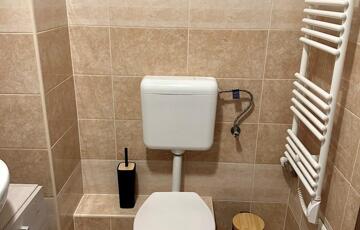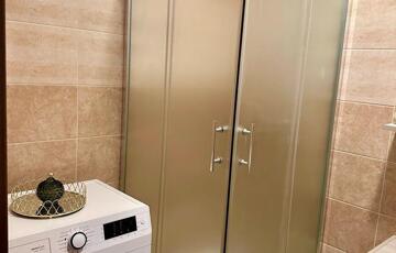 a fürdőszoba igényes burkolatokkal, zuhanykabinnal került kialakításra.