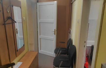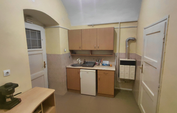 A téglaépítésű, két szobás ingatlan egyedi belső elrendezésének köszönhetően sajátos hangulatot teremt. A széles előszobából egy szoba nyílik, innen juthatunk tovább a másik szobába, majd a belső konyhába. Az egymásból nyíló terek elrendezése nyugodt, zavartalan atmoszférát teremt, legyen szó otthonról, irodáról vagy akár rendelőről.
