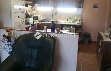 A szigetelt épületben lévő, amerikai konyha-nappali + két szobás, műanyag nyílászárós, klímával szerelt lakás. A nagyobbik 24 m2-es szoba lett átalakítva nappali + konyhává, az eredeti konyhából szoba lett.