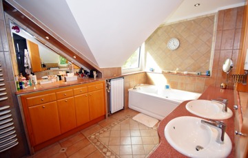 Igényes burkolatok és belsőépítészeti megoldások: tömörfa lépcső, impozáns beltéri ajtók, korszerű külső nyílászárók.