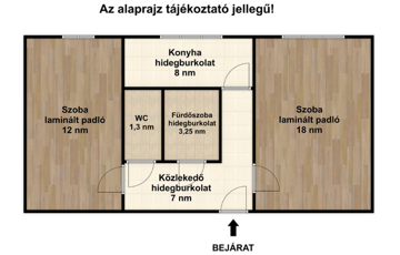 - Laminált padló a szobákban, a többi helyiség hidegburkolatos.