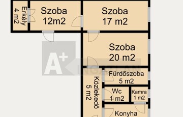 - 73 m2: Elosztását tekintve három szoba.
