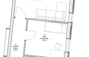 A társasház első emeltén található 48 m2-es lakás elrendezése: