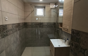 Geberit beépített bútorok, új beltéri ajtók, minőségi burkolatok, modern fürdő és zuhanyzó – mind prémium kivitelben.