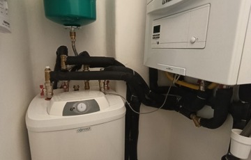 Padlófűtés és új Vaillant gázkazán, amely gondoskodik a melegvízről és a komfortos hőmérsékletről.