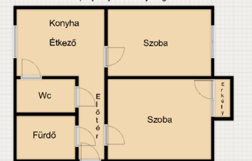 Az ingatlanban előszoba, fürdő, külön WC, két szoba, tágas konyha-étkező és gépészeti helyiség található.