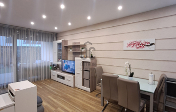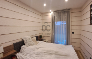 A konyhába egyedi tervezésű gépesített konyhabútor (főzőlap, sütő, mikró, mosogatógép, hűtő, elszívó) került beépítésre. Az egyik szobában egy hatalmas méretű, praktikus belső elrendezéssel bíró gardróbot alakítottak ki. A fürdőszobába nívós burkolatok és szaniterek kerültek. A prémium kivitelezés, a beépített bútorok és szekrények, valamint a LED hangulatvilágítás mind hozzájárulnak ahhoz, hogy otthona stílusos és kényelmes legyen.