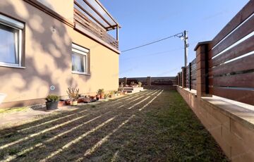 Elrendezését tekintve kiváló: térkövezett kocsibeálló a lakás kertjében 1 db autónak, előszoba, am-konyhás jó méretű világos nappali, kamra, zuhanyzós fürdő (wc-vel), nappaliból KILÉPVE 20 nm-es terasz kapott helyet, továbbá 2 hálószoba ( 15 és 10 nm). Saját 200 nm telek, körbe kerítve.