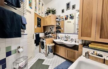 A lakás egy szépen karbantartott, patinás társasház emeletén található, délkeleti tájolásának köszönhetően egész nap természetes fényben fürdik, ami különösen előnyös ügyfélforgalommal járó tevékenységek esetén.