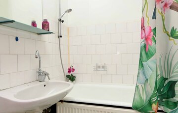 A fürdőszobában megtalálható az eredeti lapradiátor, ami nemcsak a kádat melegíti, hanem az egész lakás hőérzetén is sokat javít, ráadásul nem lett rá hőmennyiségmérő felszerelve. A lakás korszerű, távleolvasós vízórával rendelkezik.