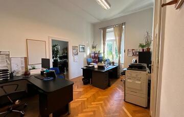 Az ingatlan 5 tágas, különnyíló szobával rendelkezik, jelenleg irodaként funkcionál, de könnyedén visszaalakítható elegáns otthonná, rendelővé vagy akár reprezentatív vállalati központtá is. A lakás közepes állapotú, így lehetőséget kínál arra, hogy az új tulajdonos saját elképzelései szerint újítsa fel, és egy igazán egyedi, értékálló ingatlant hozzon létre.