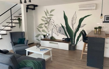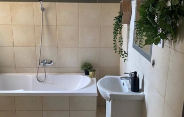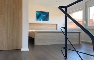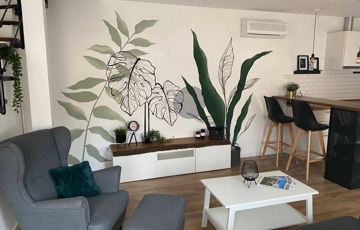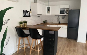 A lakás teljesen gépesített: mosógép, mosogatógép, hűtő, valamint két klíma (lent és fent).