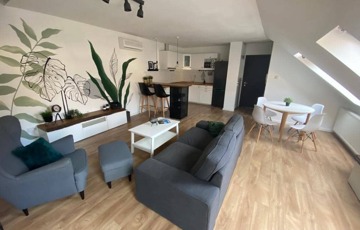 Dizájnos, tetőtéri lakás Óbuda központi részén – liftes, felújított épületben