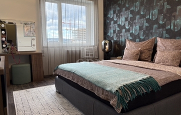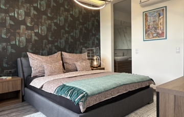 Az eredeti alaprajz szerint három szoba szerepelt, jelenleg azonban nappali–hálószoba–gardrób elrendezésben funkcionál. Igény esetén könnyedén visszaalakítható két hálószobásra. A hálószobához egy nagy, nyitott fürdő kapcsolódik kényelmes káddal. A lakás távolabbi részén egy további fürdő található zuhannyal, mosdóval és WC-vel, valamint egy külön mellékhelyiség mosdóval, WC-vel és beépített Miele mosó- és szárítógépekkel.