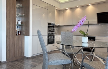 A konyha tágas, prémium kő munkalappal, Miele/Neff gépekkel és rengeteg tárolóhellyel felszerelt. A beépített bútorok között megtalálható egy megvilágított bárszekrény, két olasz design gardrób (összesen 11 méter hosszan) homokfúvott üveggel és belső világítással, valamint a fürdőkbe és hálóba tervezett egyedi bútorok, sminkasztal, Wertheim széf, design radiátorok, továbbá Natuzzi franciaágy és kanapé. A lakás okosotthon-rendszerrel, telefonról vezérelhető riasztóval, elektromos redőnyökkel és két televízióval rendelkezik.