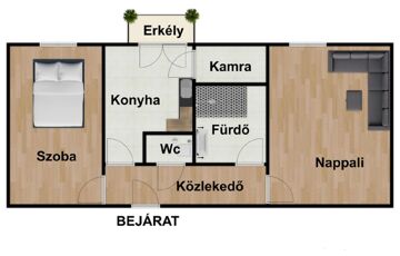 -48nm-es lakás(konyha, nappali, 1 lakószoba, fürdőszoba, kamra és egy különálló wc)