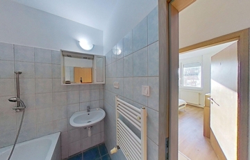 A fürdő és az illemhelyiség külön térben helyezkedik el.