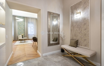 In the heart of Budapests 5th district, just a few steps from the Danube, this 86 m² luxury apartment is now for sale. Featuring a spacious living room, two bedrooms (each with its own bathroom), and a walk-in wardrobe, this home perfectly blends classic grandeur with modern sophistication.