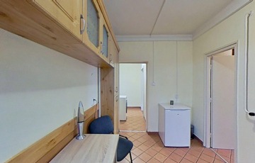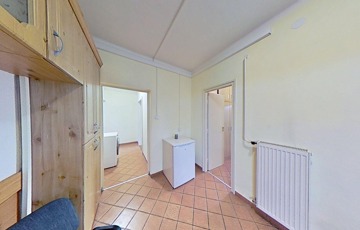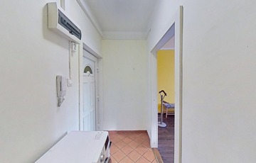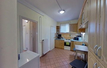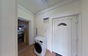 A konyhát a fürdőszobával összekötő folyosó praktikusan beépített szekrényekkel ellátott, illetve egy 2 m2-es saját tároló is tartozik hozzá, közvetlenül a lakás mellett.