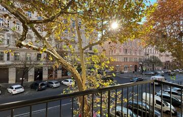 A megújult Városliget a közelben található, a széles utcát hatalmas platán fák díszítik.