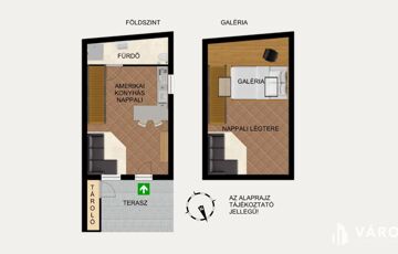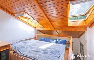 33 négyzetméteres alapterületén a bejárat irányába lejtő tetőszerkezet egy külön hálógaléria kialakítását tette lehetővé, az elrendezést a mellékelt alaprajz mutatja. Fűtése kombikazánról üzemel, padlófűtéssel, hűtését 5 hónapja felszerelt inverteres klíma végzi.